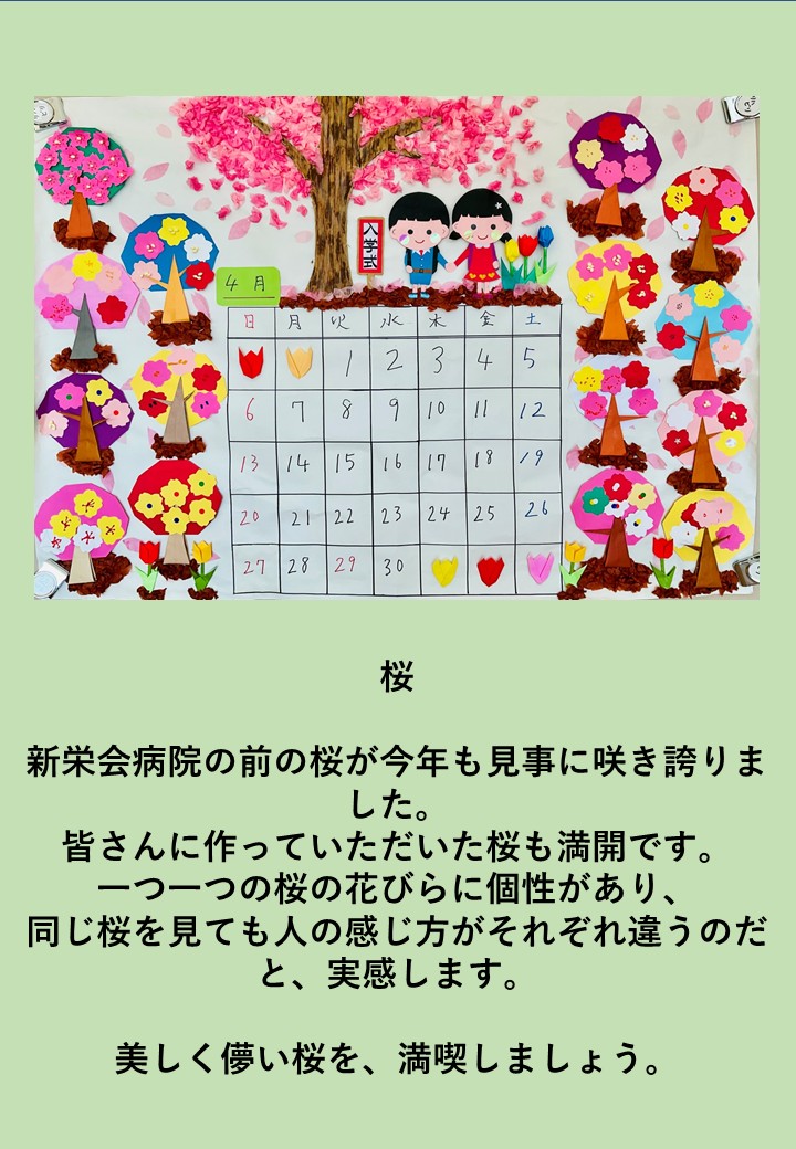 介護医療院で入学式のカレンダーを作成しました。