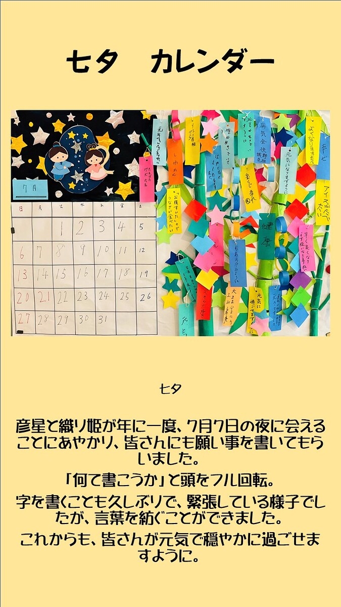 介護医療院で七夕のカレンダーを作成しました。