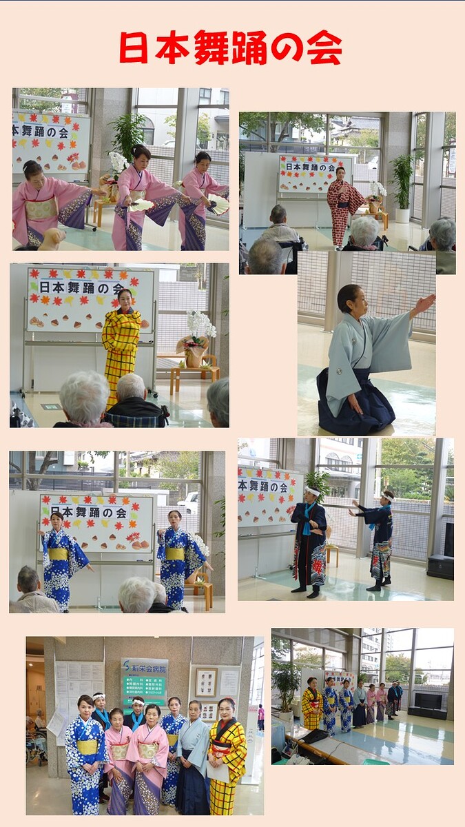当院のレクリエーションの一環として、今回は地元のボランティアの方々にご協力いただき、「日本舞踊の会」を実施しました。患者さんやご家族に大変好評でした。ボランティアの皆様、ありがとうございました。
